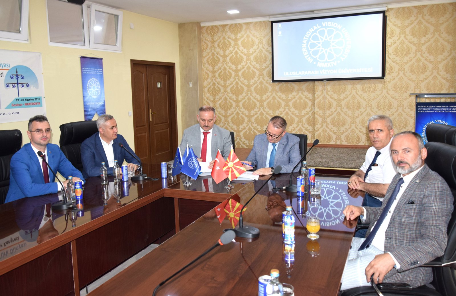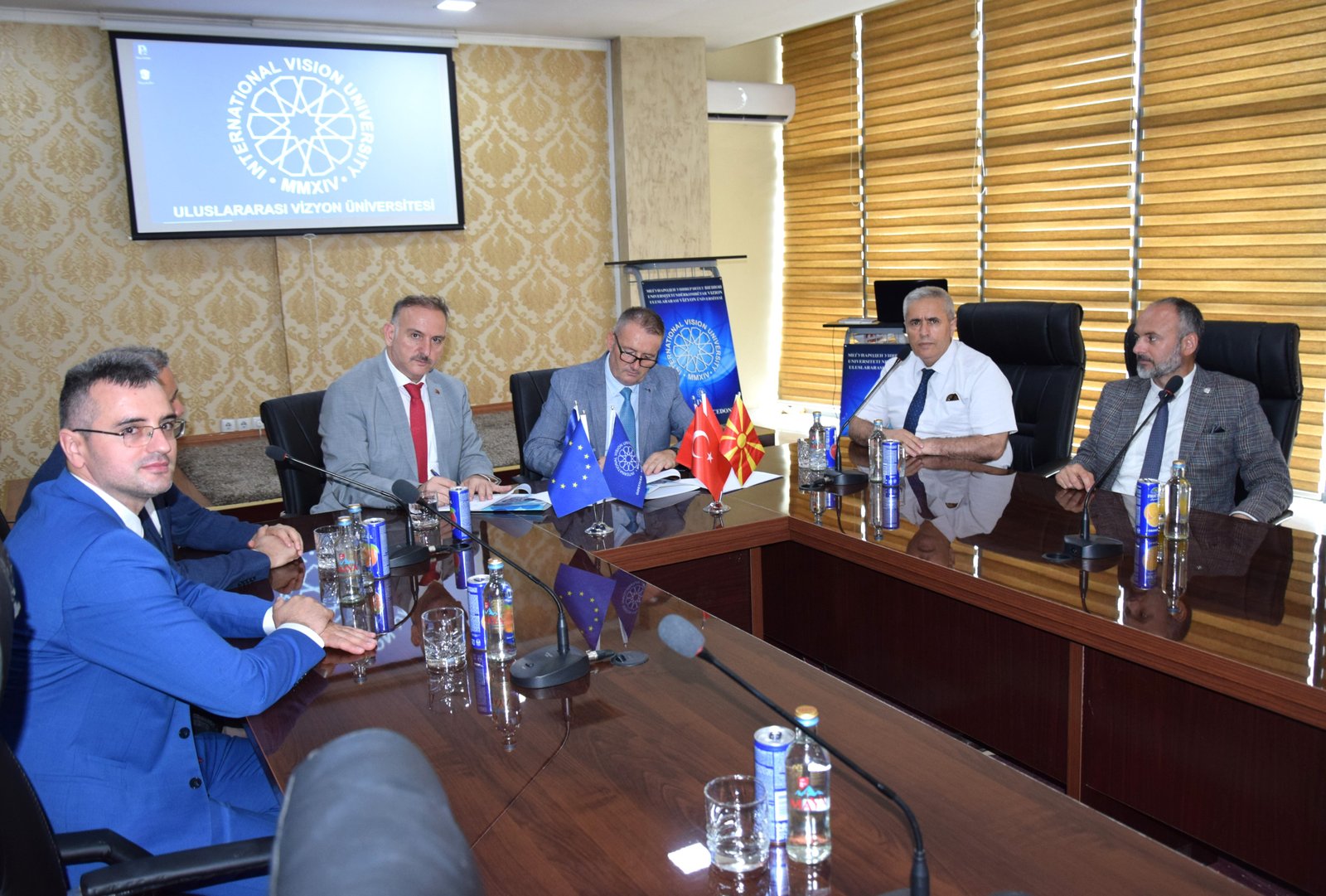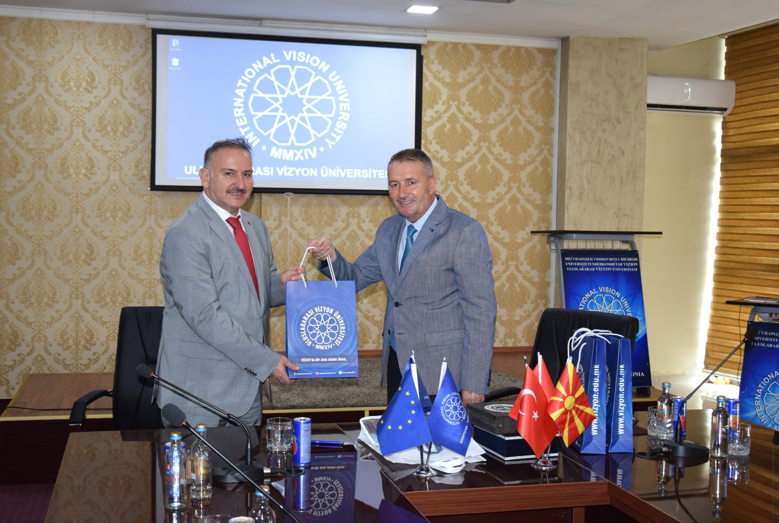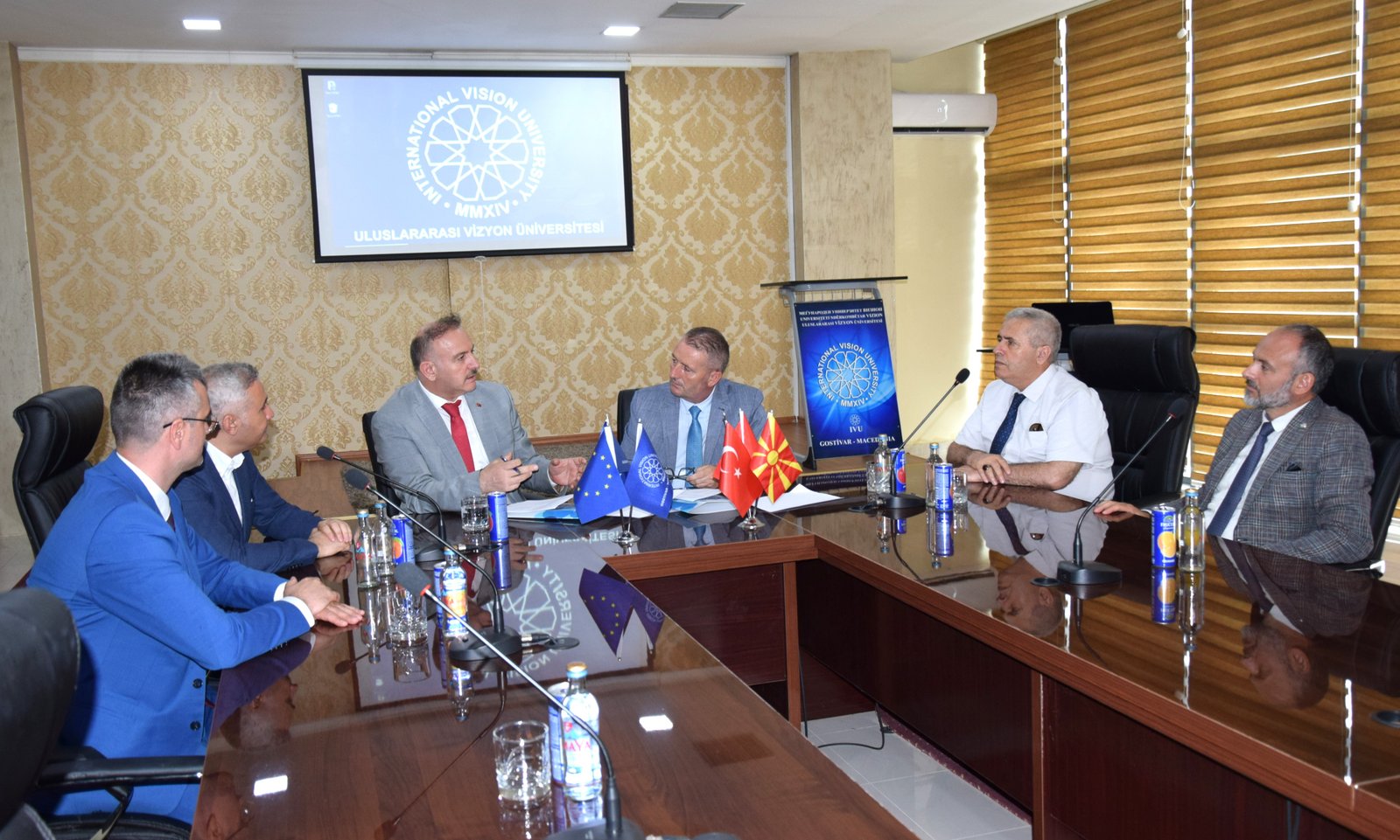The Rector of Harran University, Prof. Dr. Mehmet Tahir Güllüoğlu, along with his delegation, visited International Vision University. They were welcomed by Prof. Dr. Mensur Nuredin, Vice Rector of Vision University, on behalf of the institution. During the visit, potential collaborations between the two universities were discussed, and significant steps were taken towards establishing these partnerships.