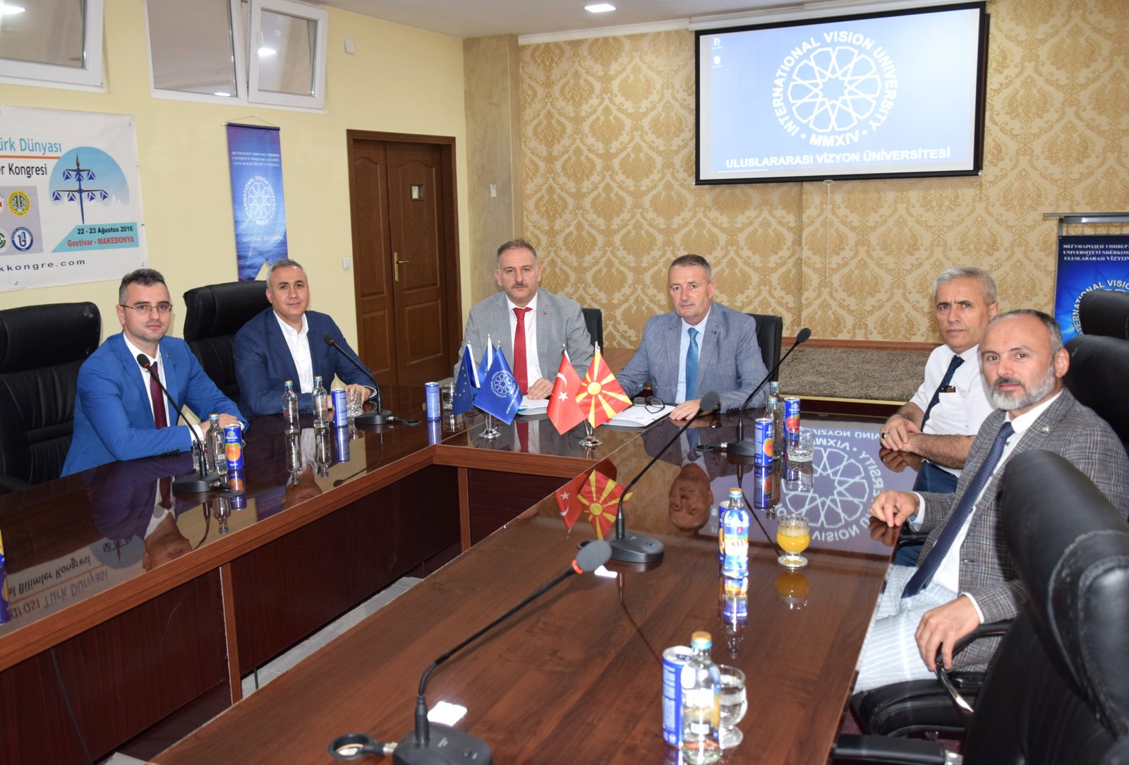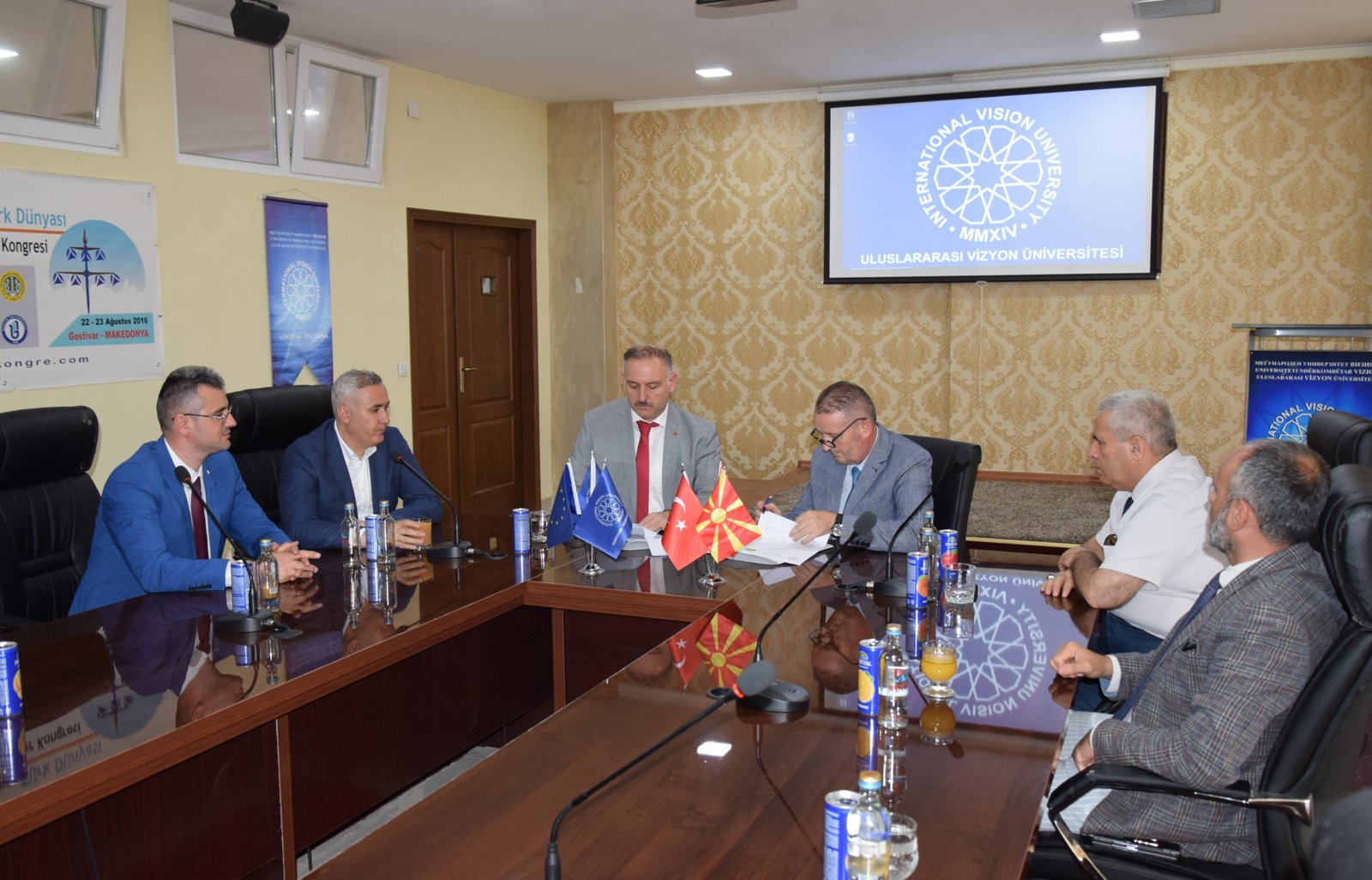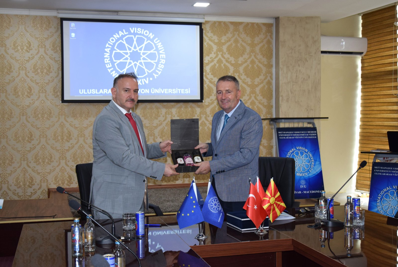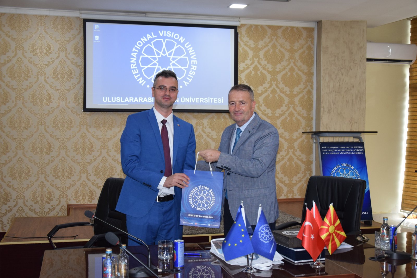 The Rector of Harran University, Prof. Dr. Mehmet Tahir Güllüoğlu, along with his delegation, visited International Vision University. They were welcomed by Prof. Dr. Mensur Nuredin, Vice Rector of Vision University, on behalf of the institution. During the visit, potential collaborations between the two universities were discussed, and significant steps were taken towards establishing these partnerships.
