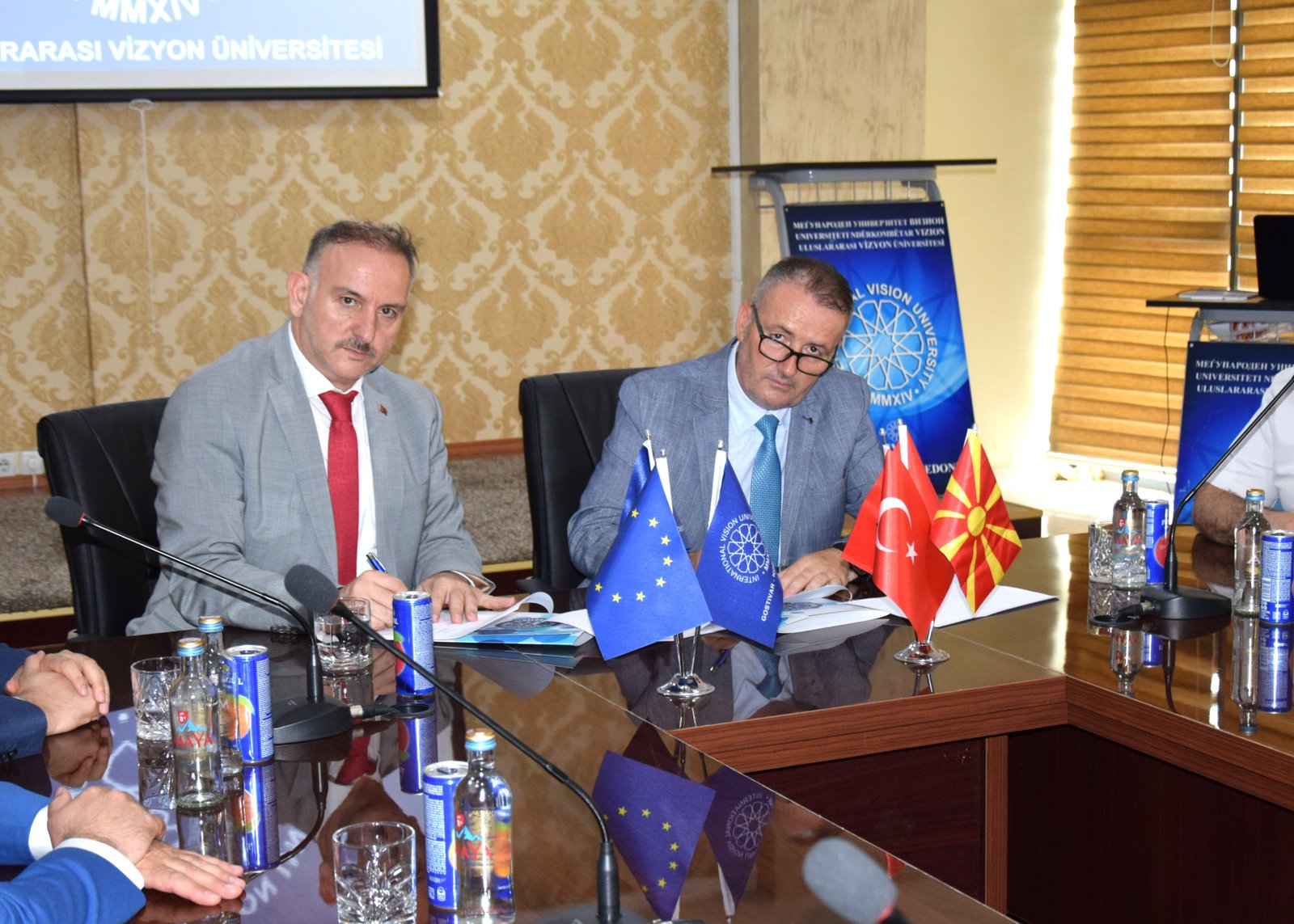 Prof. Dr. Mensur Nuredin, Vice Rector of International Vision University, and Prof. Dr. Mehmet Tahir Güllüoğlu, Rector of Harran University, signed the cooperation protocol during a ceremony held in the senate hall. Both leaders expressed that this protocol would strengthen inter-institutional cooperation and contribute significantly to the fields of education and research.