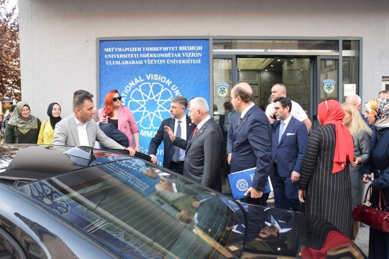 The former Prime Minister of the Republic of Turkey and the Chairman of the Council of Elders of Turkic States, Mr. Binali YILDIRIM, visited International Vision University. He was welcomed by the Rector, Prof. Dr. Ahmet Vecdi CAN, the Founding Rector, Prof. Dr. Fadıl HOCA, Vice Rectors Prof. Dr. Abdülmecid NUREDİN, Prof. Dr. Mensur NUREDİN, Prof. Dr. Zoran FİLİPOVSKİ, as well as Dr. Beycan İLYAS, the General Chairman of the Turkish Democratic Party, Erdoğan SARAÇ, the General Chairman of the Turkish National Unity Movement, Fikrim DAMKA, the Minister of Regional Development of the Republic of Kosovo and the General Chairman of the Democratic Turkish Party of Kosovo, Assoc. Prof. Dr. Muhittin KAHVECİ, Chief Advisor to the Prime Minister of North Macedonia, university professors, and a large number of students. Following the initial meeting, a meeting was held in the Senate Hall between the two parties, led by the Rector of International Vision University. During this meeting, information was provided to Mr. Binali YILDIRIM regarding the university's activities and the challenges it has faced to date.