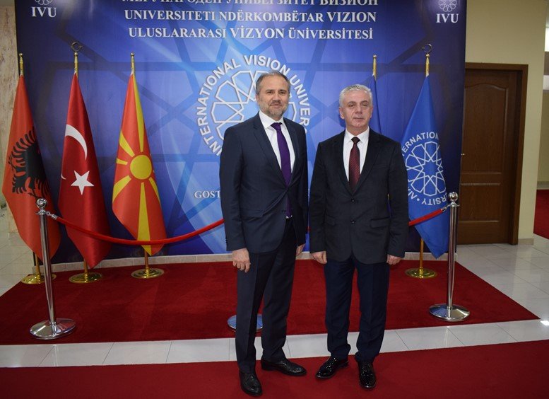 Türkiye Cumhuriyeti Üsküp Büyükelçisi Sn. Hasan Mehmet SEKİZKÖK, Tika Üsküp Kordinatörü Halim Ömer Söğüt, Yunus Emre Enstitüsü Müdür Serhat Kula ve Büyükelçilik heyeti Uluslararası Vizyon Üniversitesini ziyaret etti. Uluslararası Vizyon Üniversitesi Rektörü Prof.Dr. Fadıl HOCA ile başbaşa yapılan görüşmeden sonra,  Uluslararası Vizyon Üniversitesi Öğretim kadrosu ve öğrenciler ile Üniversitenin tören salonunda biraraya gelindi. Türkiye Cumhuriyeti Üsküp Büyükelçisi Hasan Mehmet SEKİZKÖK, Uluslararası Vizyon Üniversitesinin faaliyetlerini içeren sinevizyon gösterimini izledikten sonra, Uluslararası Vizyon Üniversitesi Hocaları ve öğrencilerine yönelik bir selamlama konuşması yaptılar. Uluslararası Vizyon Üniversitesi Rektörü  Prof.Dr. Fadıl HOCA, Türkiye Cumhuriyeti Üsküp Büyükelçisi Hasan Mehmet SEKİZKÖK’e Üniversitenin derslik ve konferans salonlarını gezdirerek, Uluslararası Vizyon Üniversitesi hakkında bilgi verdi.