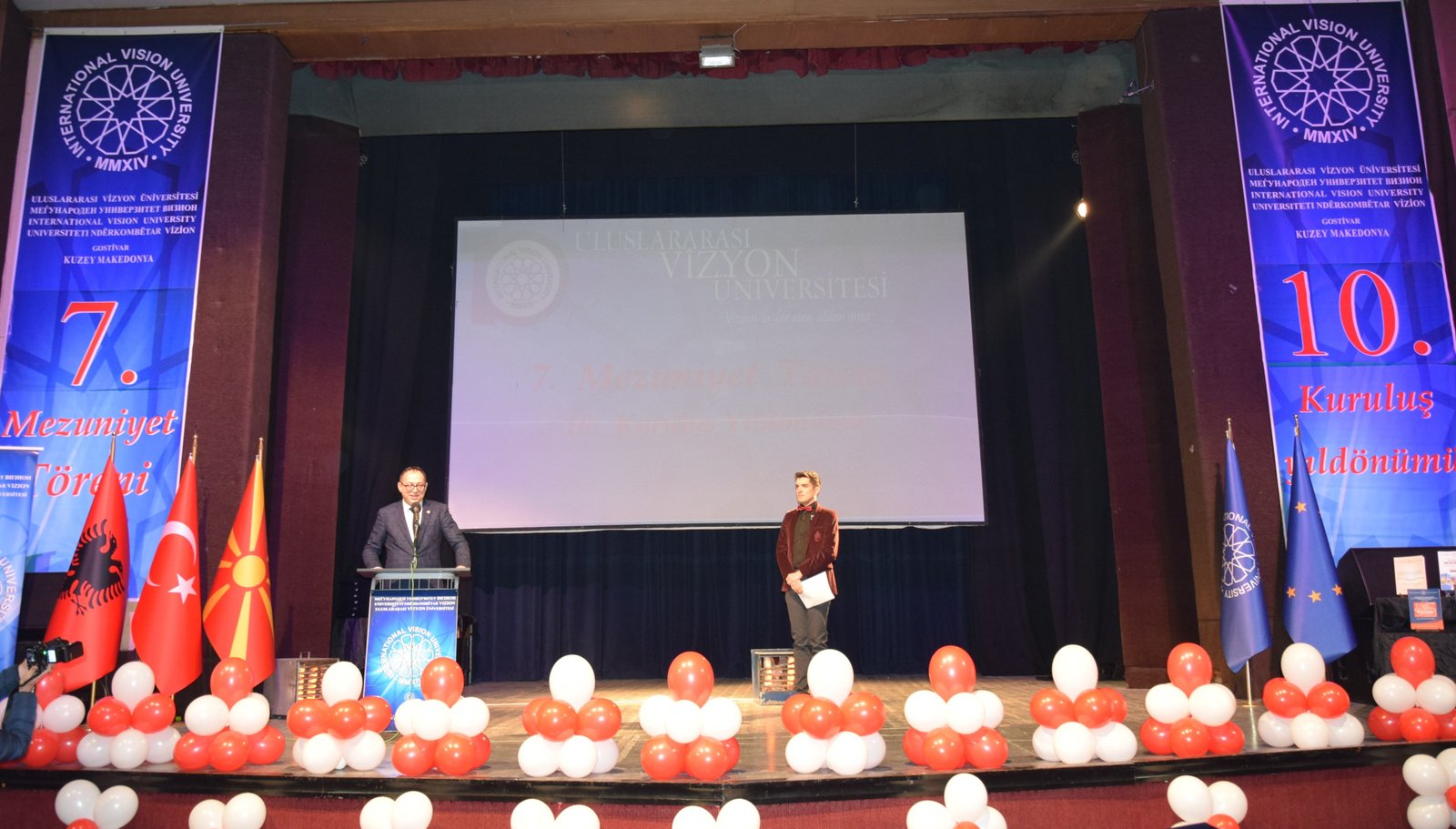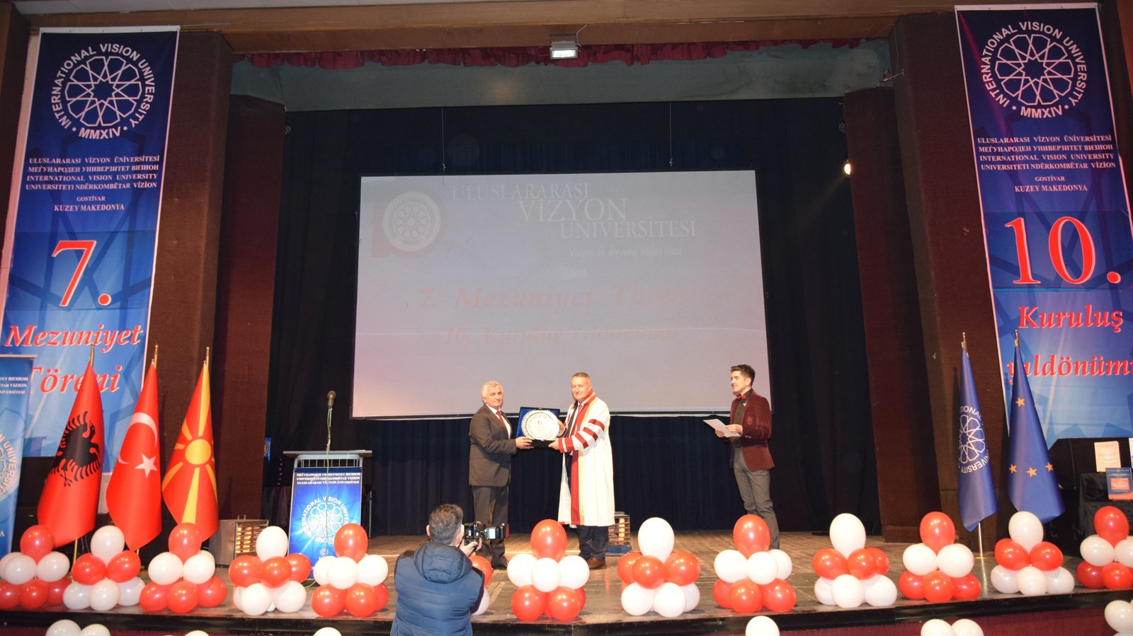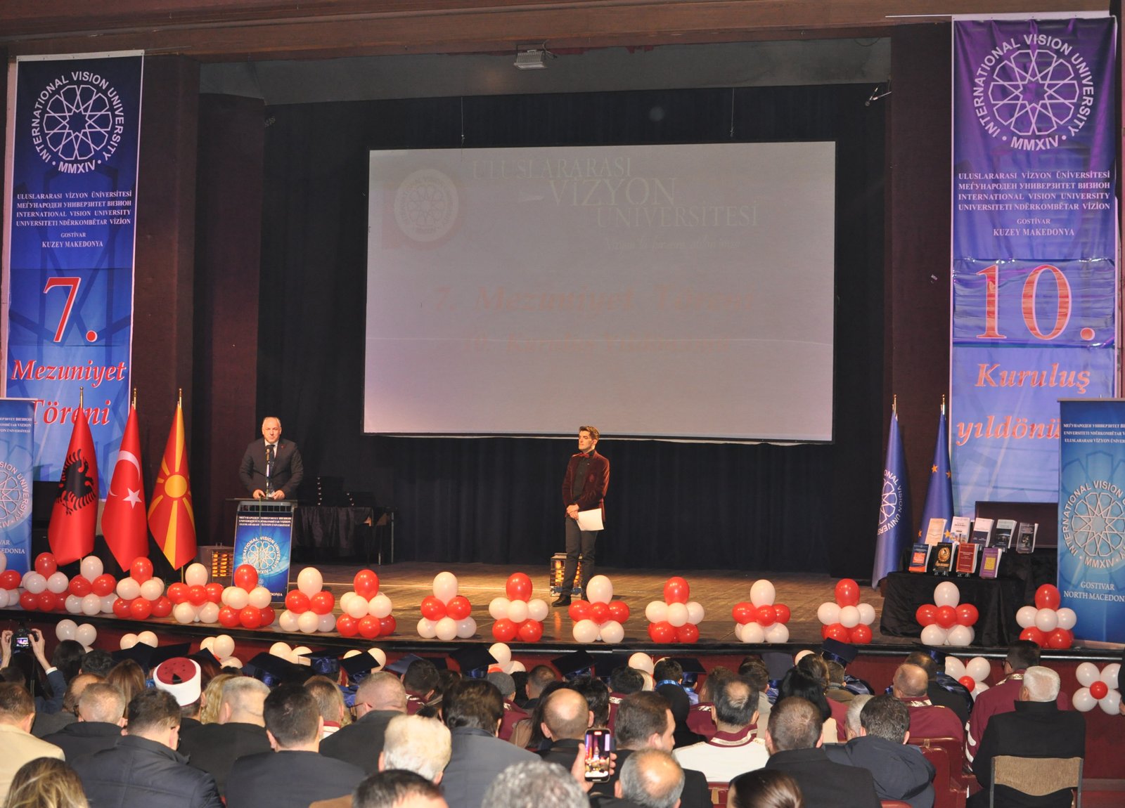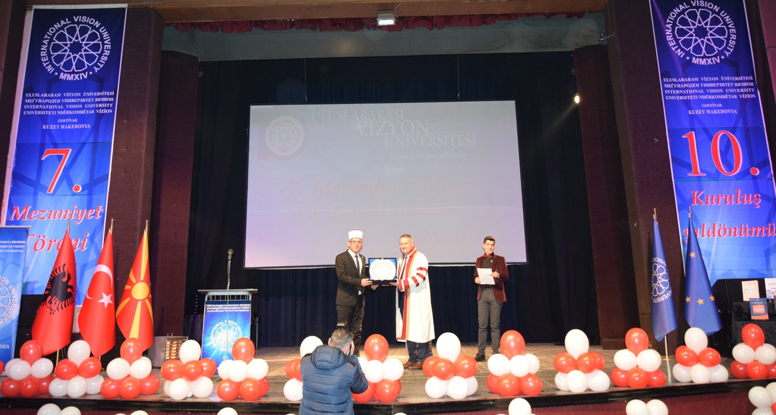 The Mayor of Gostivar, Dr. Valbon Limani, was the first to deliver greetings during the ceremony. He stated, “The educational development in Gostivar is rapidly advancing thanks to the contributions of International Vision University. The success of your university is a source of pride for our region.”