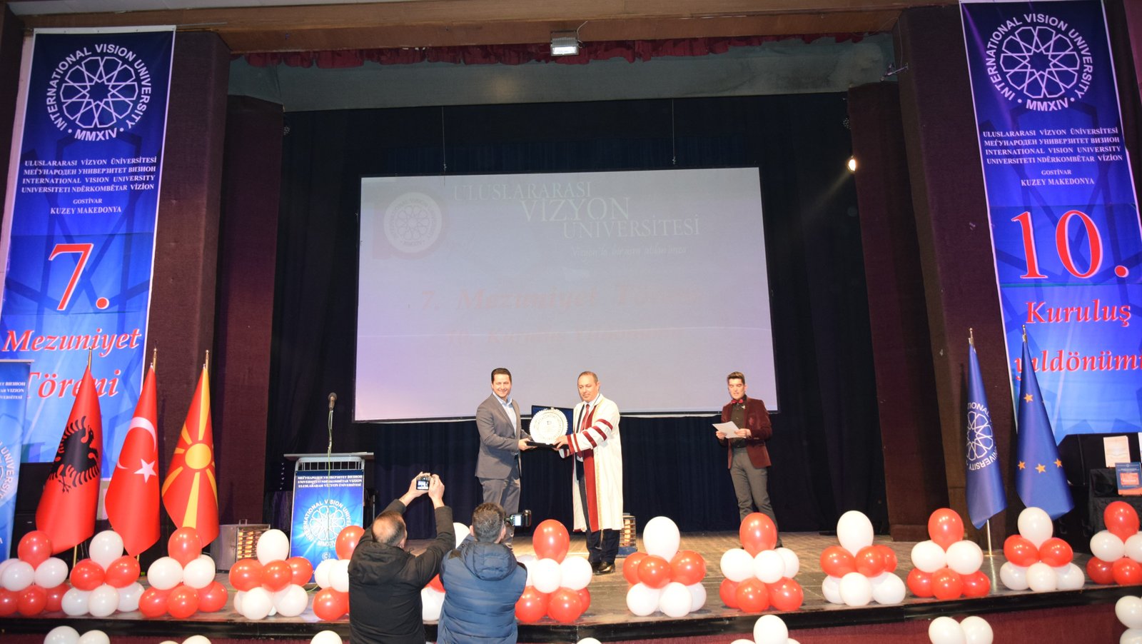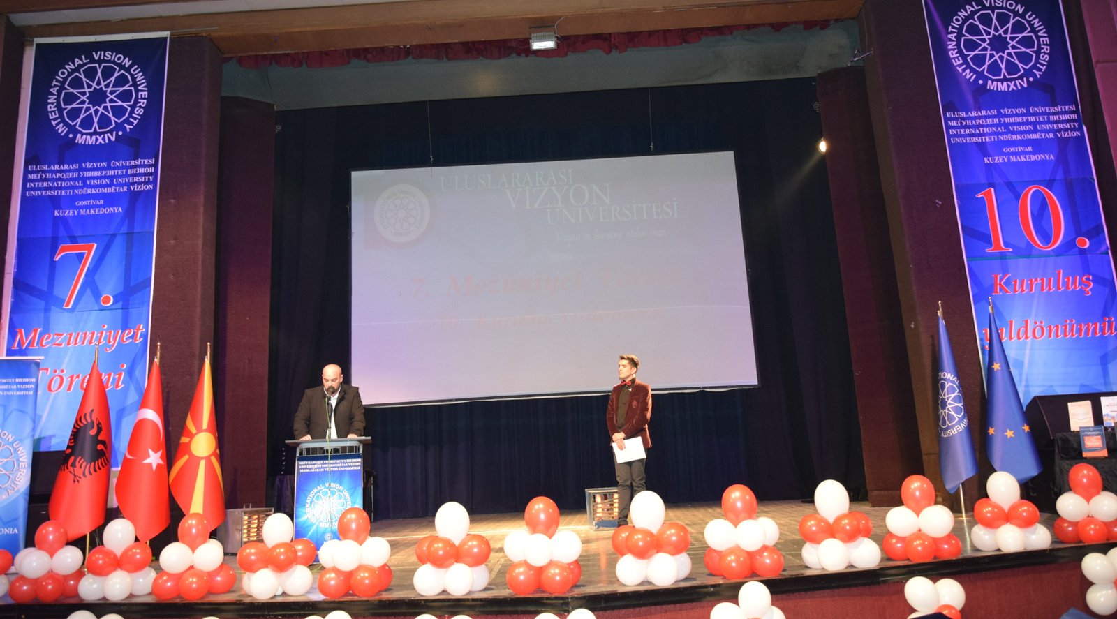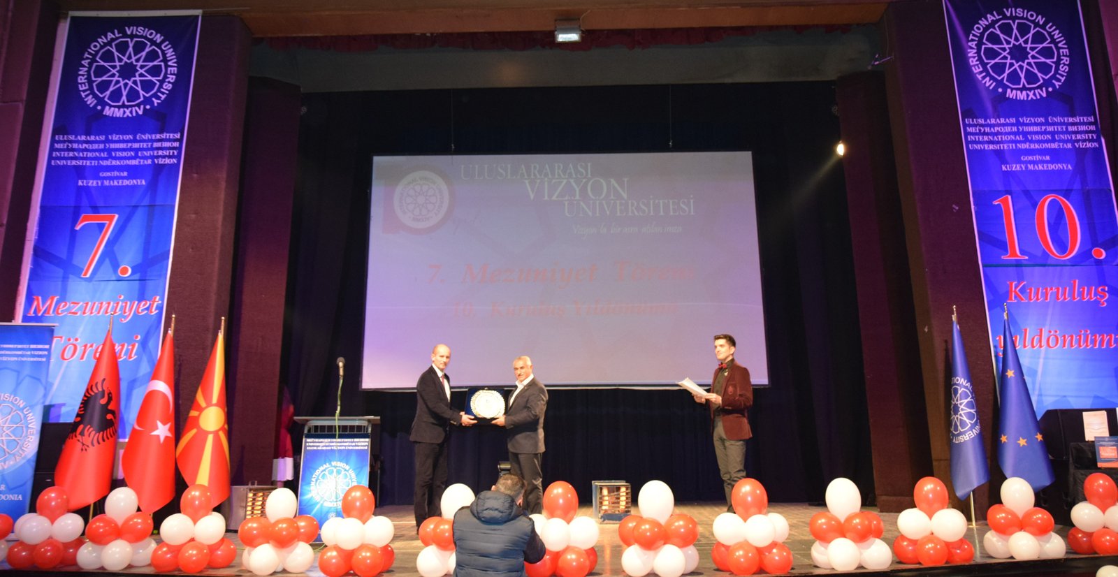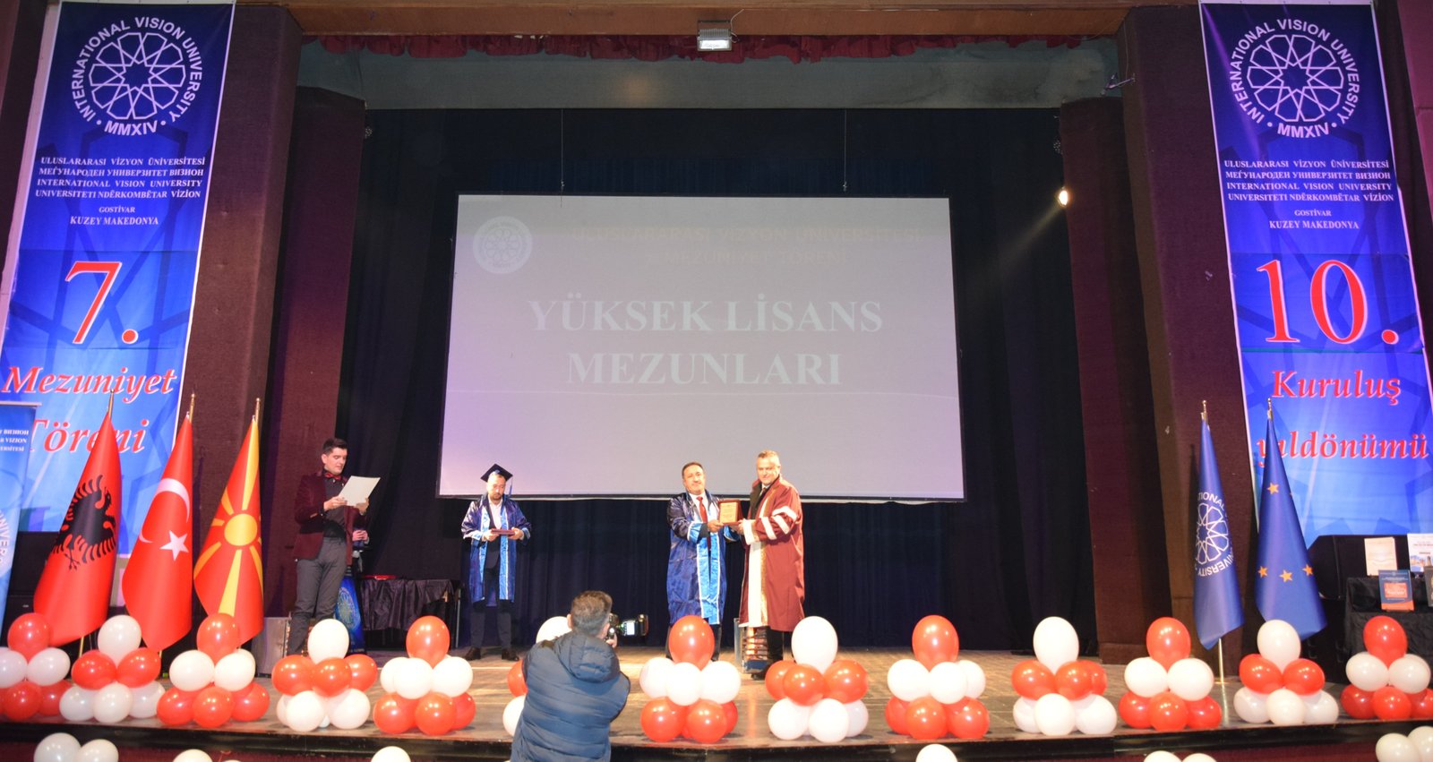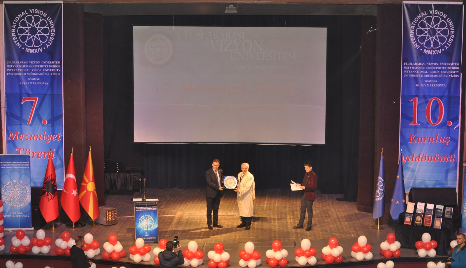 The Mayor of Gostivar, Dr. Valbon Limani, was the first to deliver greetings during the ceremony. He stated, “The educational development in Gostivar is rapidly advancing thanks to the contributions of International Vision University. The success of your university is a source of pride for our region.”