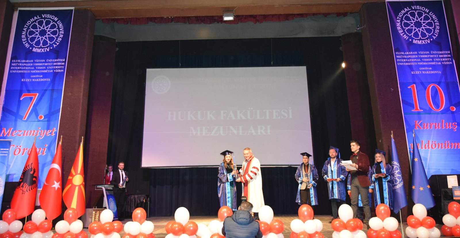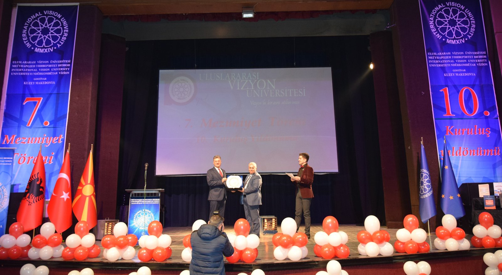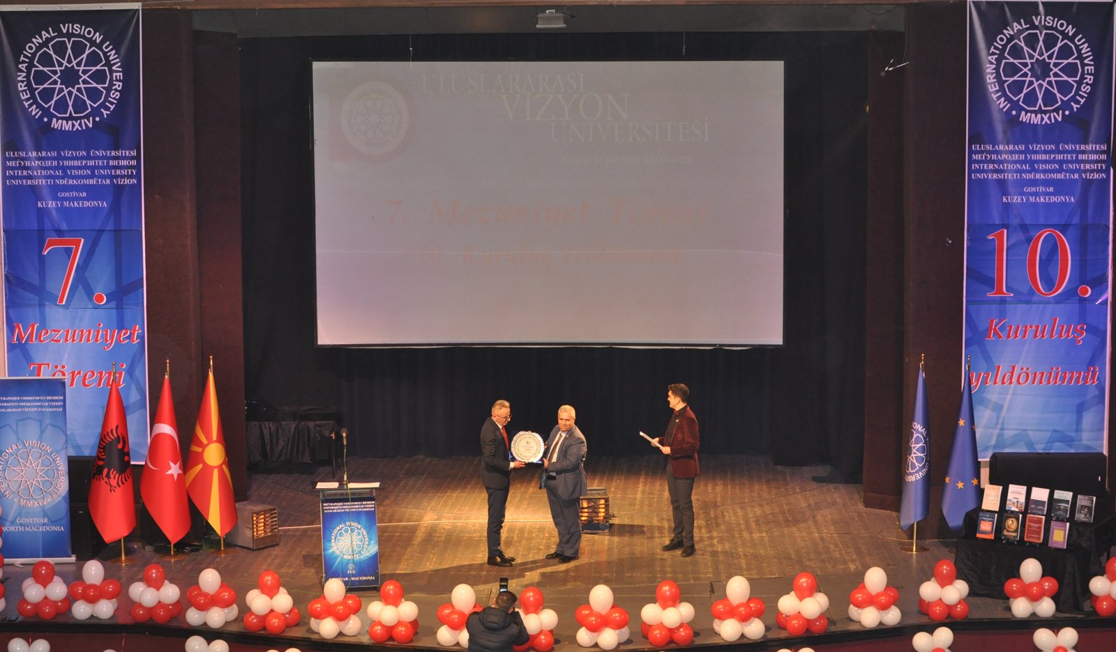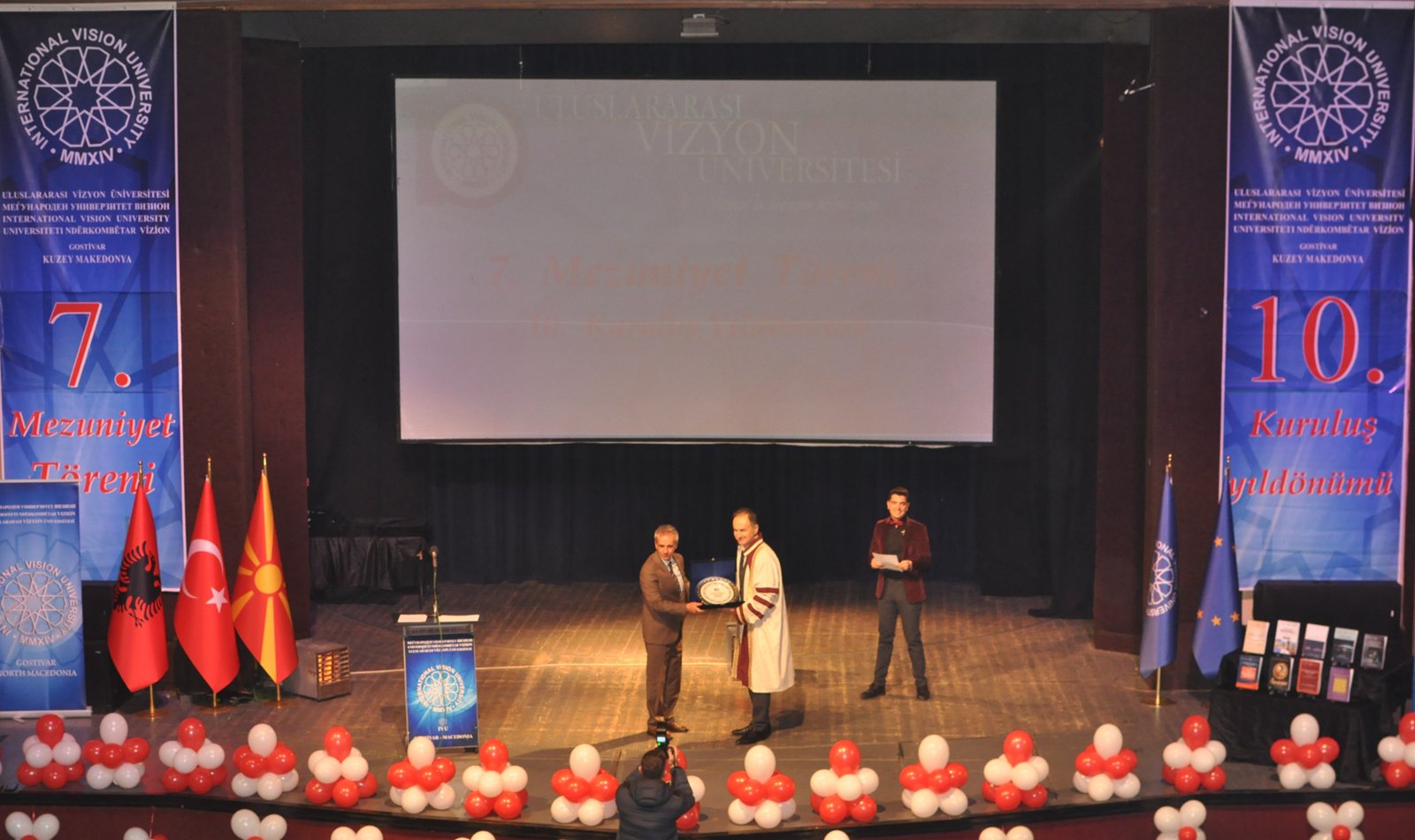 The Mayor of Gostivar, Dr. Valbon Limani, was the first to deliver greetings during the ceremony. He stated, “The educational development in Gostivar is rapidly advancing thanks to the contributions of International Vision University. The success of your university is a source of pride for our region.”