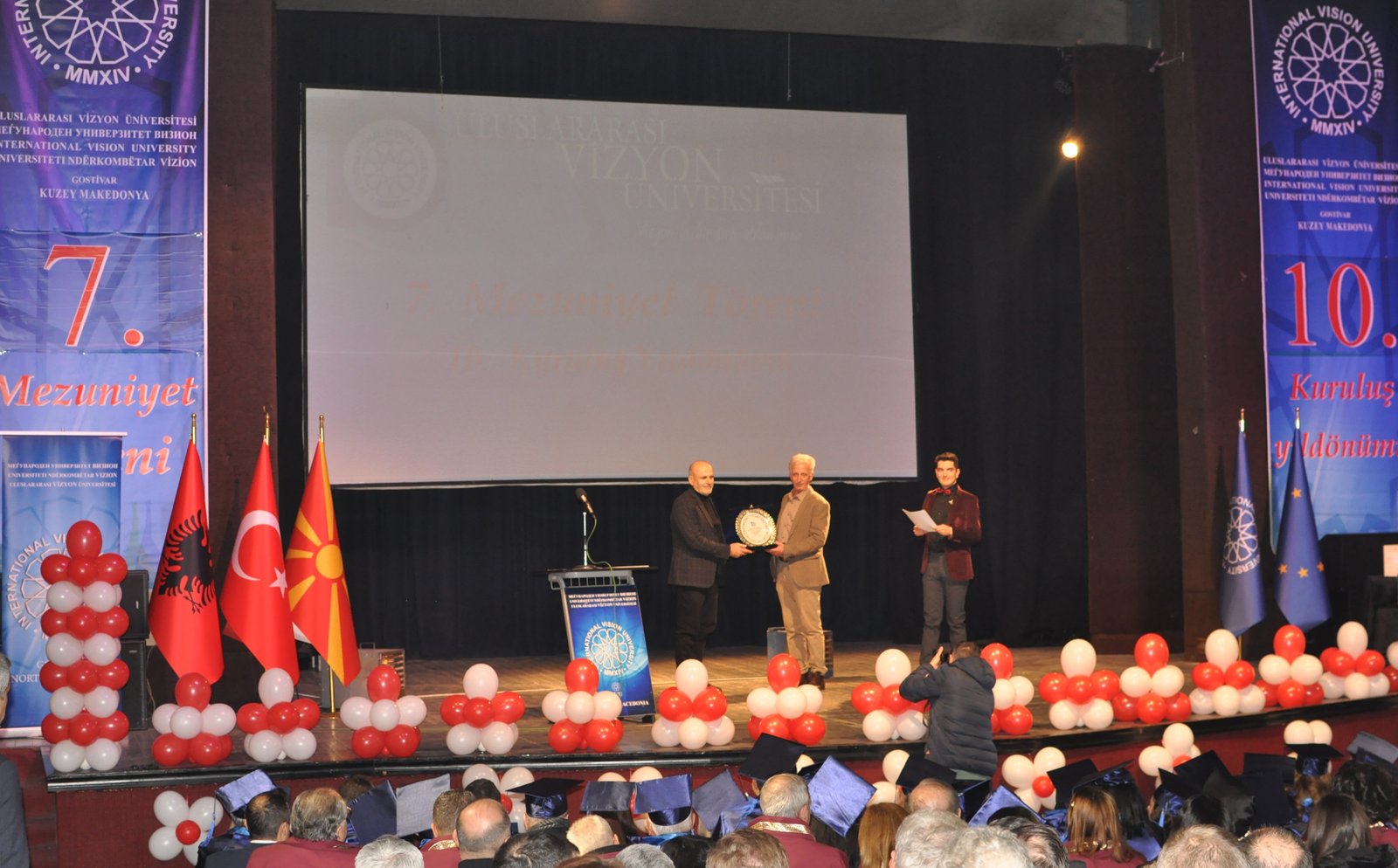 The opening speech was delivered by the Rector of International Vision University, Prof. Dr. Ahmet Vecdi Can. He emphasized the university's rapid progress since its establishment 10 years ago and highlighted its commitment to quality education. Following him, the Founding Rector of International Vision University, Prof. Dr. Fadıl Hoca, gave an emotional and proud speech about the university's ten-year journey. He stated, “This educational initiative, which we began 10 years ago, now produces graduates recognized across European countries who achieve great success. Together, we have done everything we can for the success of our university and our students, and we will continue to do so.”
