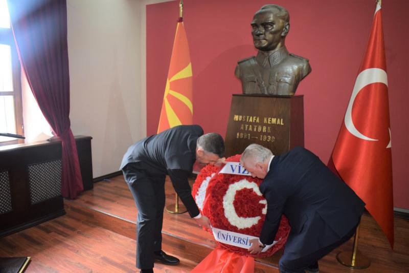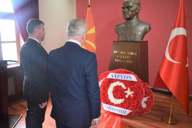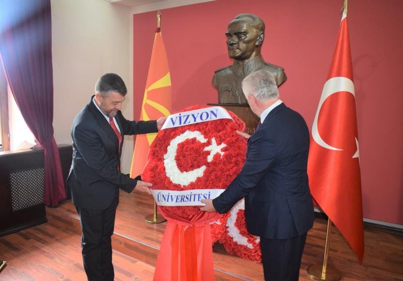Програмата започна со едноминутен молк во чест на духовното присуство на Ататурк во 9:05 часот. Потоа ректорот на Меѓународниот универзитет „Визион“, проф. д-р Ахмет Веџди Џан го одржа протоколарниот говор. По протоколарните говори, неколку поетски дела во спомен на Ататурк беа изрецитирани од страна на студентите на Меѓународниот универзитет „Визион“. Во продолжение на церемонијата за комеморацијата на Ататурк, под водство на ректорот на Меѓународниот универзитет „Визион“, проф. д-р Ахмет Веџди Џан и основачкиот ректор проф. д-р Фадил Хоџа, во спомен-собата на Ататурк беше положен венец.