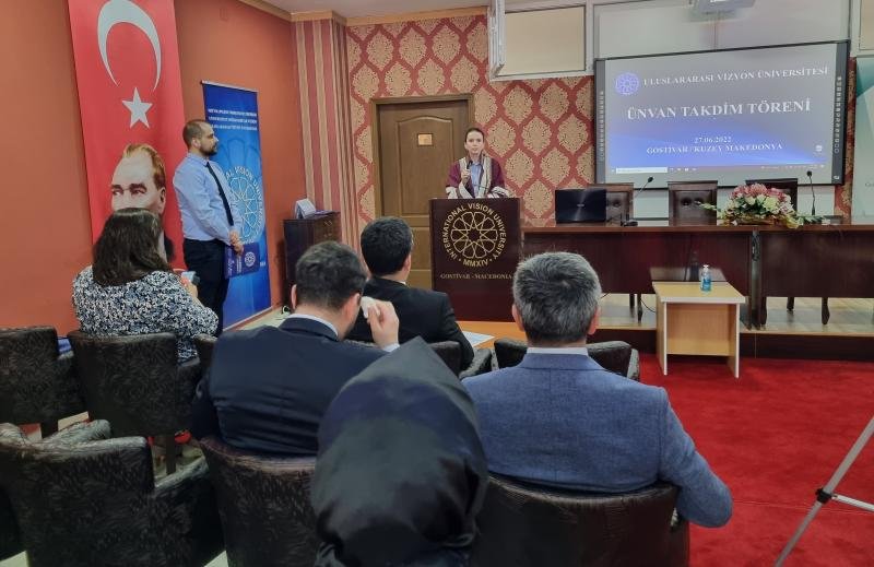 По извршената евалуацијата им беше врачена академската титула доцент на 3 почитувани професори на Меѓународниот универзитет „Визион“, доц. д-р Гремина Елмази (дипломирана на Универзитет за ликовни уметности „Мимар Синан“), доц. д-р Шехида Ризванче Масани (дипломирана на Универзитетот „Хаџетепе“) и доц. д-р Азам Ќорбајрам (дипломиран на Универзитетот „Гази“).