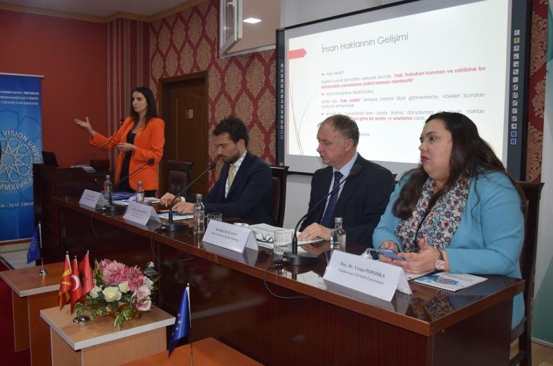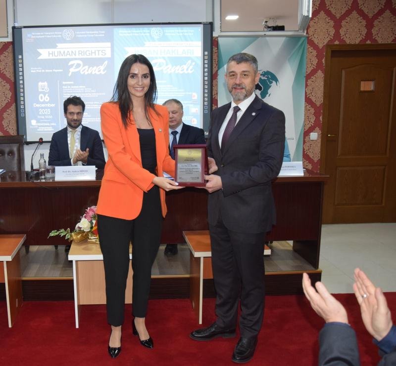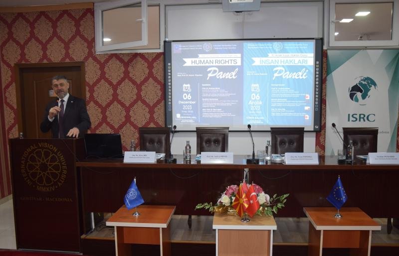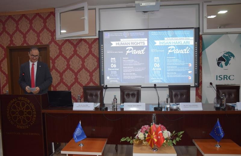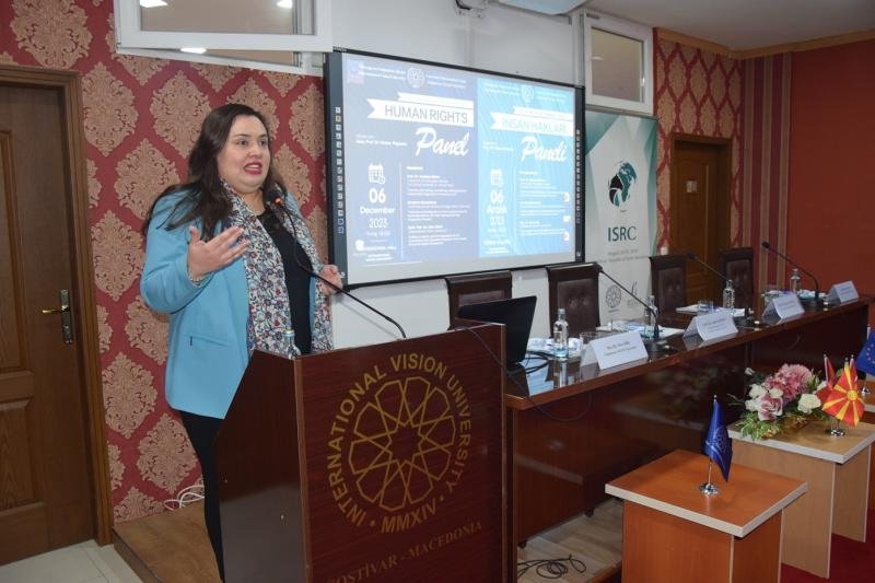 On December 6, 2023, an international panel was organized at the ceremony hall of International Vision University on Human Rights Day, the day when the 'Universal Declaration of Human Rights' was adopted. The panel, moderated by the Dean of the Faculty of Law at IVU, Assoc. Prof. Dr. Vesna Poposka, featured speakers including Prof. Dr. Andrea Minto from Ca' Foscari University in Venice, Italy, and Stavenger University in Norway, Ambassador Secim Muhamed from the Ministry of Foreign Affairs of the Republic of North Macedonia, and Assoc. Prof. Dr. Ebru İbiş from IVU.