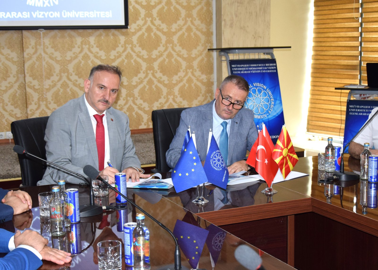 Uluslararası Vizyon Üniversitesi Rektör Yardımcısı Prof. Dr. Mensur NUREDİN ve Harran Üniversitesi Rektörü Prof. Mehmet Tahir GÜLLÜOĞLU, senato salonunda düzenlenen törenle işbirliği protokolüne imza attılar. Her iki yetkili de bu protokolün, kurumlar arası işbirliğini güçlendireceğini ve eğitim ile araştırma alanlarında önemli katkılar sağlayacağını ifade etti.
