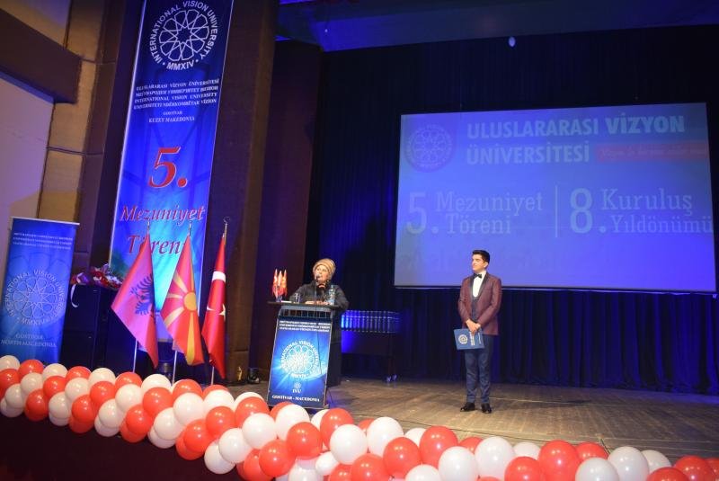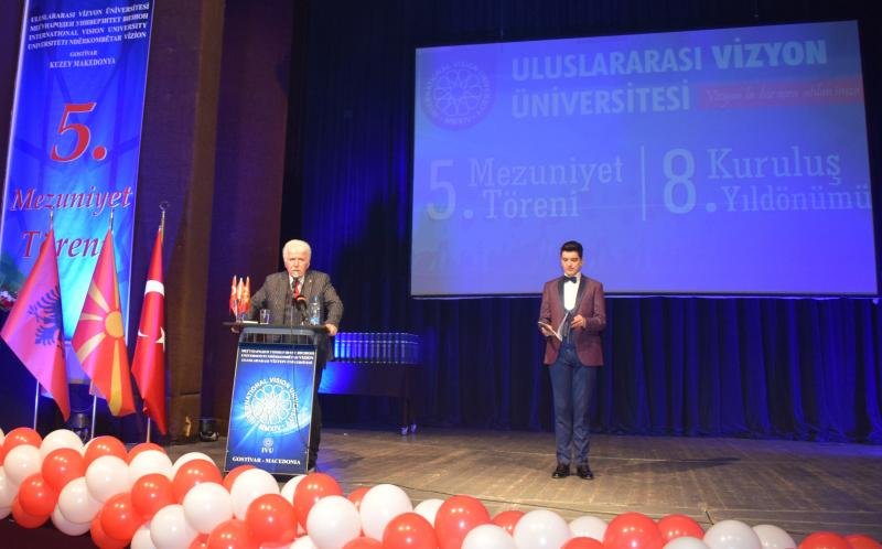 Uluslararası Vizyon Üniversitesi’nin 8.Kuruluş Yıldönümü ve 5.Mezuniyet Töreni ile 21 Aralık Türkçe Eğitim Bayramı kutlamaları Gostivar Kültür Merkezi’nde ünlü sunucu Yusuf Emin’in sunumuyla gerçekleşti.