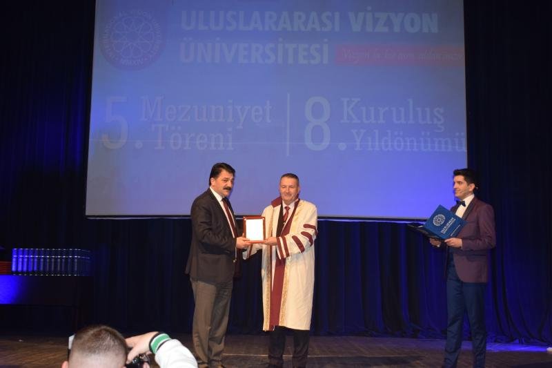 Programın sonunda Uluslararasi Vizyon Üniversitesi Rektörü Prof.Dr Ahmet Vecdi CAN , Kurucu Rektör Prof.Dr Fadıl HOCA, Rektör yardımcıları Prof.Dr Abdülmecit NUREDİN, Prof.Dr Mensur NUREDİN ve Prof.Dr Zoran FİLİPOVSKİ tarafından  değerli katılımcılara plaket takdimi yapıldıktan sonra, mezun öğrencilere diplomaları ,nesil ve bölüm birincilerine  ise takdirnameler  verildi. Kep atma töreniyle programın kapanışı yapıldı.