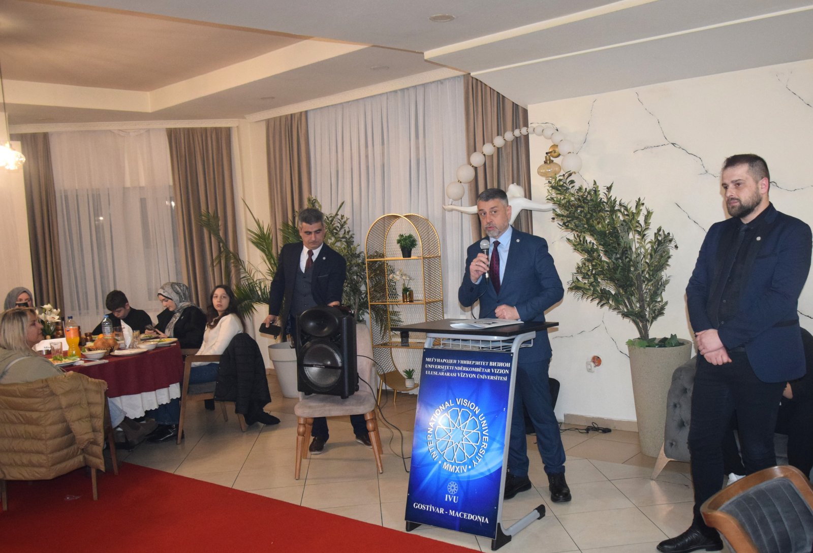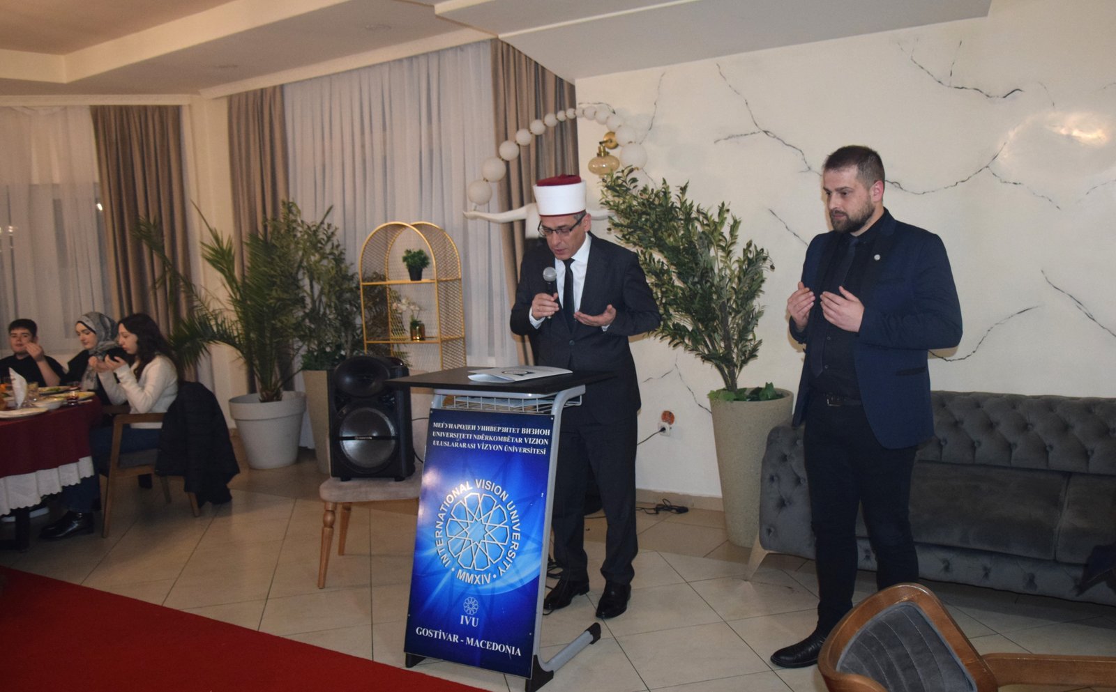 Uluslararası Vizyon Üniversitesinin düzenlemiş olduğu İftar Proğramına Katılanlar arasında: T.C. Üsküp Büyük Elçiliği Eğitim Müşaviri Ali Rıza Altunel, TMBH Genel Başkanı Erdoğan SARAÇ, Mavrova ve Rostuşa Bölgesi Milletvekili Mevmet CAFERİ, Eski Devlet Bakanı Hadi NEZİR, K.M.C. Anayasa Mahkemesi Üyesi Fatmir SKENDER, MATTO Yönetim Kurulu Başkanı Aydoğan ADEMOSKİ, Merkez Jupa Belediye Başkanı Ariyan İBRAHİM, Üsküp Yünus Emre Enstitüsü Müdürü Yunus DİLBER, MAARİF Okulları Kuzey Makedonya Müdürü Osman DEMİRGÜL, İştip Goçe Delçev Üniversitesi Senato Üyesi Prof. Dr. Mahmut ÇELİK, Üsküp Pedagoji Fakültesi Türkçe Bölümü Başkanı Prof. Dr. Adnan KAHİL, Prof. Dr. İhsan AYAL vardı.